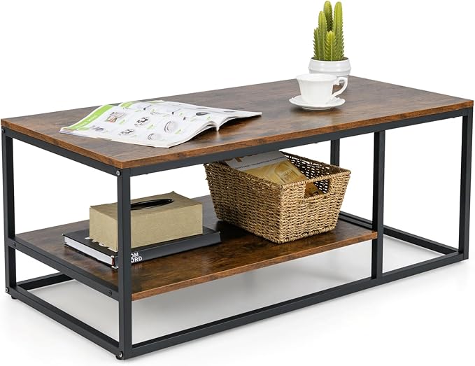 The COSTWAY 2‑Tier Coffee Table brings a winning blend of industrial style and everyday practicality to any space. Built with a strong metal frame and engineered wood surfaces, it’s described as “sturdy reliable,” designed for daily use with supportive X‑shaped legs and a powder-coated finish to prevent rust . The roomy top and lower shelf create two tiers of storage—perfect for keeping coffee cups, books, game controllers, or snacks neatly within reach At roughly 105 × 50 × 42 cm, its modest rectangular shape fits well in living rooms, offices or bedrooms, while its rustic brown wood tone and sleek metal base give it that rustic‑industrial charm. It’s easy to assemble, easy to clean, and offers both style and function—ideal for enjoying your morning brew or unwinding in the evening.